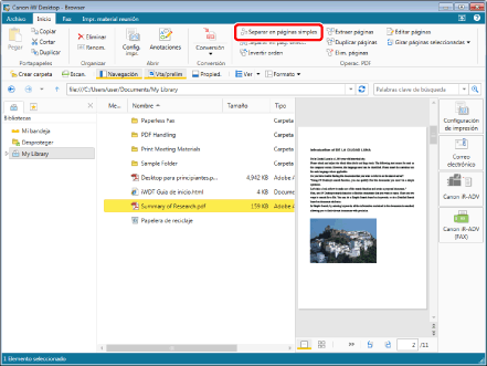 Si divide páginas de un documento PDF con un atributo como "Solo lectura" (Windows), el atributo quedará invalidado en el documento PDF tras dividir las páginas.