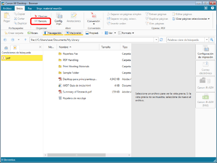 Seleccione una condición de búsqueda en la lista [Condiciones de búsqueda] en la Ventana de navegación.