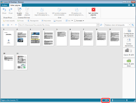 Puede cambiar el factor de ampliación de las páginas mostradas en la Ventana de vista preliminar del Modo de edición de páginas.