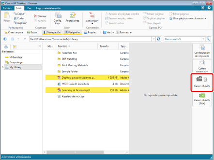 Si ha seleccionado una carpeta, se imprimen los documentos dicha carpeta.