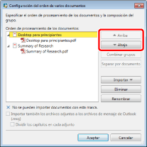 Para obtener más información sobre el cuadro de diálogo [Configuración del orden de varios documentos], consulte: