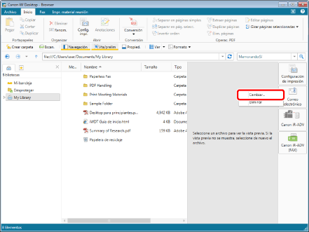 También puede realizar la misma operación haciendo clic en el botón de salida de correo mostrado en la cinta o la barra de herramientas y seleccionando [Cambiar]. Si un botón de salida no se muestra en la cinta o la barra de herramientas, consulte lo siguiente para visualizarlo.