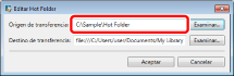Una carpeta ya registrada como el origen de transferencia de una Hot Folder o Mi bandeja