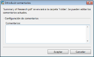 El cuadro de diálogo [Introducir comentarios] también puede mostrarse seleccionando un documento de Mi bandeja y haciendo clic en