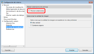 Cuando se ha definido la ocultación de las extensiones, aunque añada una extensión al final del nombre del documento y lo guarde, el texto añadido se considerará como parte del nombre del documento. Sin embargo, si el documento no tiene una extensión, el texto añadido se considerará una extensión.