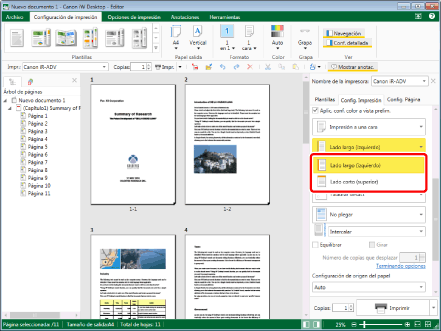 Esta función solo se puede utilizar si selecciona una impresora Canon y la casilla [Usar config. impr. de Editor] en la pestaña [Config. Impresión] de la Ventana Detalles, el comando de la cinta o el botón de herramienta.
