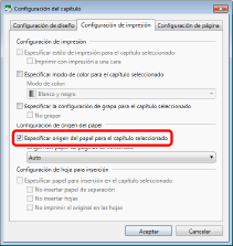 Puede configurar los ajustes de origen del papel para el capítulo especificado de forma distinta que para el documento entero.