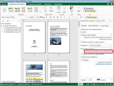 Al especificar ajustes de pie de página detallados, aparecen ajustes de pie de página detallados. Los ajustes son los mismos que para el encabezado.