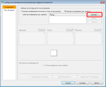 Este procedimiento es igual para [Insertar encab/pie en pág. impresión] y para [Insertar encab/pie en pág. originales].