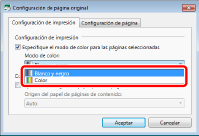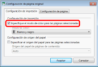 Si la impresora Canon seleccionada en [Impr.] no es compatible con la impresión en color, no se podrá especificar el modo de color por páginas.