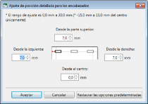 Haga clic en [Restaurar las opciones predeterminadas] para que el encabezado/pie de página vuelva a la posición estándar.