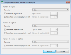 Permite especificar la configuración detallada de los números de página del capítulo.