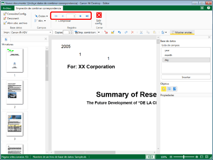 Puede mostrar los datos de Combinación de correspondencia en un registro distinto del que se muestre en ese momento en el campo de Combinación de correspondencia.