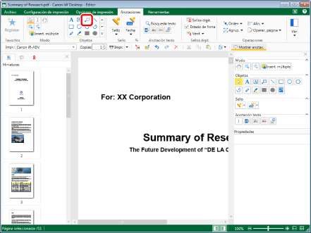 Esta operación también puede realizarse con los botones de herramienta de la barra de herramientas. Si no se muestran botones de herramienta en la barra de herramientas de Desktop Editor, consulte la siguiente información para visualizarlos.