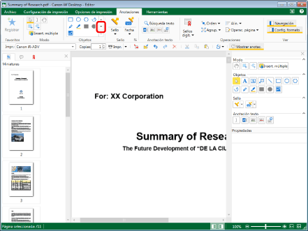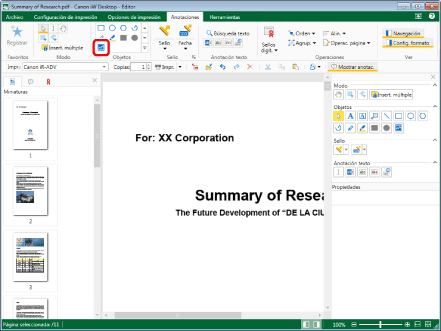 Esta operación también puede realizarse con los botones de herramienta de la barra de herramientas. Si no se muestran botones de herramienta en la barra de herramientas de Desktop Editor, consulte la siguiente información para visualizarlos.