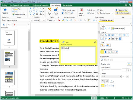 Con Desktop Editor, puede insertar una nota de texto en un documento a modo de anotación.