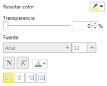 La posición del control deslizante y el valor numérico indican el grado de transparencia del área resaltada de la nota de texto. Para cambiar el grado de transparencia, mueva el control deslizante a la izquierda o a la derecha, o bien escriba un valor numérico. También puede utilizar  para cambiar el grado de transparencia.