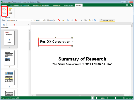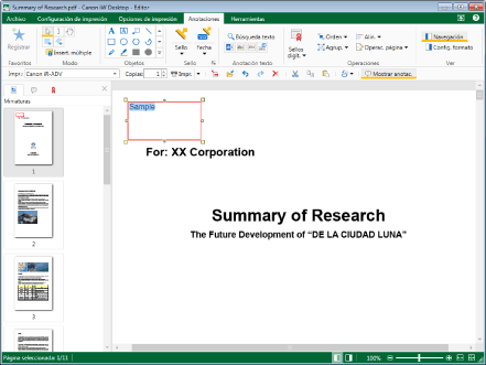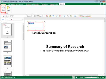 Si realiza una operación de pegar cuando la anotación que va a copiar/pegar no está seleccionada, la cadena de texto copiada/pegada se pega en forma de anotación (Texto).