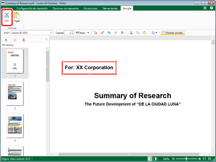 En esta sección se describe cómo cortar el contenido de texto, cuadros de texto, comentarios y notas de texto.