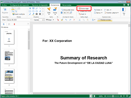 Mientras se encuentre en el Modo de sellos digitales no podrá seleccionar ni modificar anotaciones.