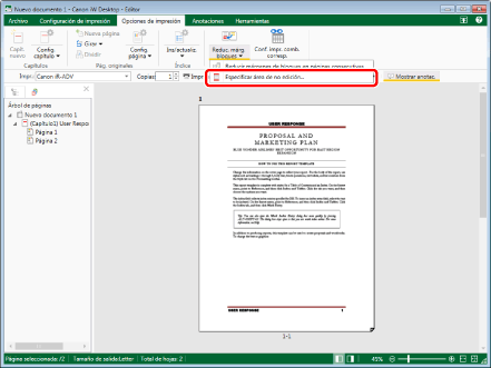 Las áreas en las que no se puede realizar la edición no se pueden establecer por página. Se establecen por documento.