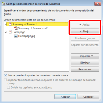 [Configuración del orden de varios documentos]: muestra el cuadro de diálogo [Configuración del orden de varios documentos].