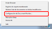 Cuando se especifica una carpeta como destino de monitorización, se monitorizará cuando se esté ejecutando Document Monitor, aunque no se esté ejecutando Desktop Browser, y se mostrará un icono de notificación de documento cuando haya un documento no leído o actualizado en la carpeta.