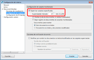 Seleccione esta casilla para proporcionar notificaciones con sonido cuando haya documentos no leídos o actualizados en la carpeta monitorizada.
