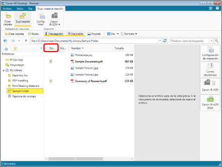 Haga clic en [No leído] en la línea del encabezado de la Ventana de visualización de la lista de archivos.