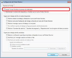 Desmarque la casilla de verificación [Iniciar Printer Monitor al arrancar el ordenador].