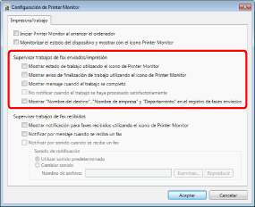 Si selecciona esta casilla de verificación, el icono de visualización de estado muestra el estado de los trabajos en Barra de tareas.