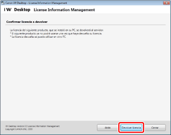 Compruebe el contenido de la ventana y haga clic en [Devolver licencia].