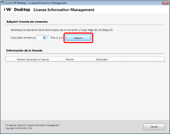 Para Windows 10, seleccione el menú [Inicio] > [Todas las aplicaciones] > [Canon iW] > [iW Desktop License Information Management].