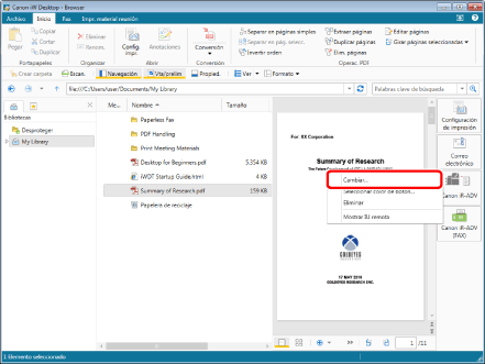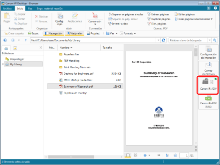En Desktop, el resultado de la impresión/envío de faxes se puede confirmar en un ordenador. El icono que indica el progreso en la barra de tareas cambia según el estado del trabajo. Por tanto, las tareas que antes resultaban tediosas se pueden realizar de forma sencilla en un ordenador y esto hace que las tareas de impresión y envío de faxes resulten más eficientes.