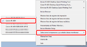 (Printer Monitor) en la barra de tareas y seleccione los dispositivos que desee supervisar en [Seleccione la impresora cuyo estado desea monitorizar].