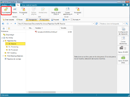 Seleccione la carpeta que desee supervisar en la Ventana de navegación o en la Ventana de visualización de la lista de archivos de la pantalla Desktop Browser.