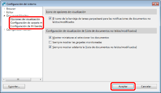 Si fuera necesario, especifique cada opción y haga clic en [Aceptar].