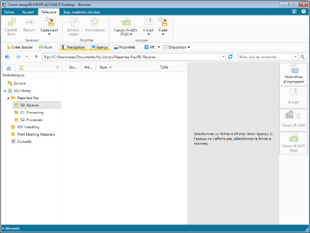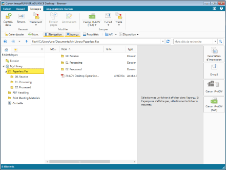 (Traitement) dans l'onglet [Télécopie]. Le contenu du dossier "01. Processing" est affiché. (Cela peut être utilisé comme raccourci.)