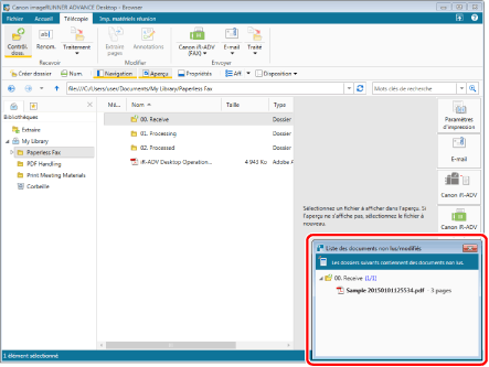 Pour afficher le contenu du dossier "00. Receive", il suffit de double-cliquer dessus dans la fenêtre [Liste des documents non lus/modifiés]. Les documents ajoutés sont inscrits en gras.