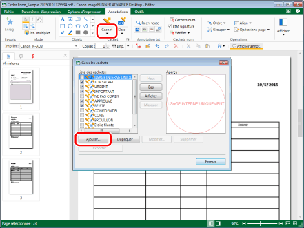 de l'onglet [Annotations], puis cliquer sur [Ajouter] dans la boîte de dialogue affichée.