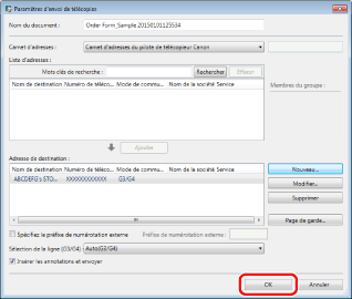 Cliquer sur [OK] pour envoyer la télécopie au destinataire.