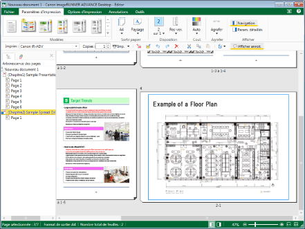 Configurer les paramètres d'impression tout en affichant l'aperçu des résultats d'impression dans Desktop Editor. Il est possible de vérifier les résultats d'impression avant de lancer l'impression.