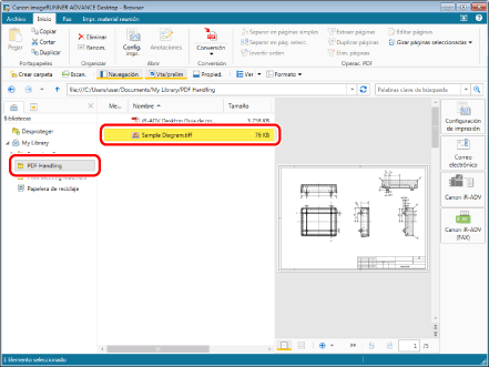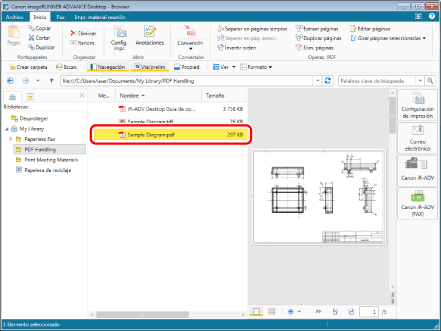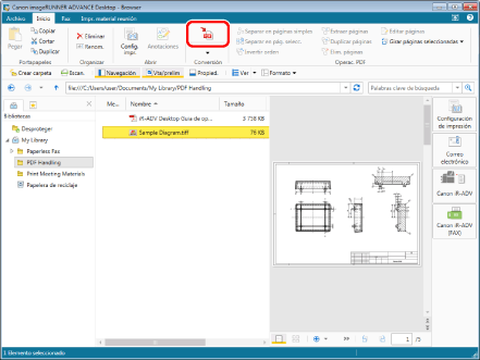 Seleccione el archivo "Sample Diagram.pdf" que ha creado en "Convertir en un documento PDF," y, a continuación, haga clic en