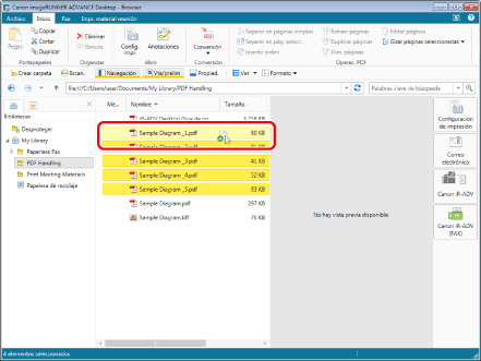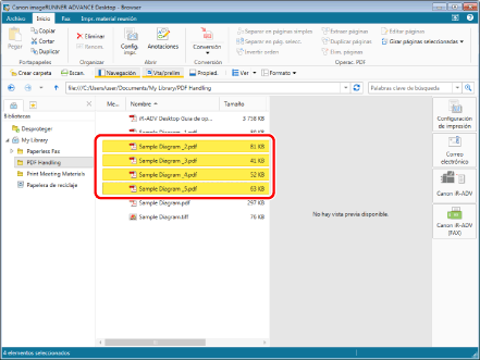 Seleccione los documentos de "Sample Diagram_2.pdf" a "Sample Diagram_5.pdf" que dividió en el apartado "Dividir un documento PDF".