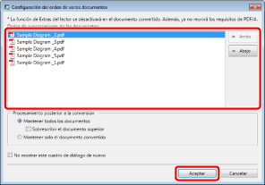 Tras establecer el orden de los documentos que se van a combinar y hacer clic en [Aceptar], se combinan los documentos.