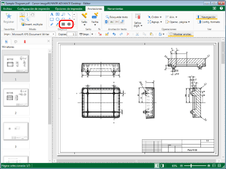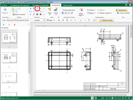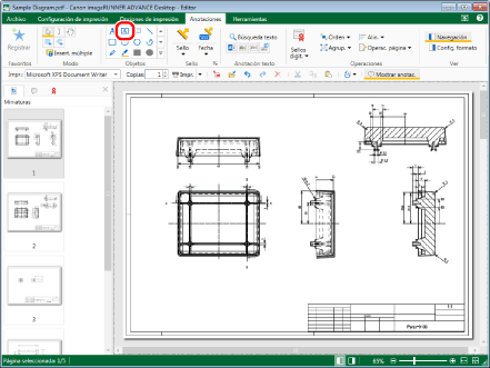 Seleccione el archivo "Sample Diagram.pdf" que creó en "Convertir en un documento PDF" y, a continuación, haga clic en [Anotaciones] en la pestaña [Inicio].