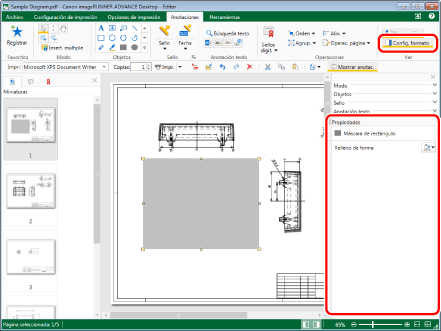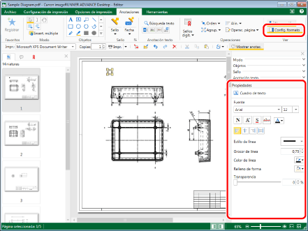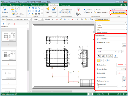 Haga clic en el grupo [Ver] > [Config. formato] en la pestaña [Anotaciones] y configure las propiedades de la anotación.