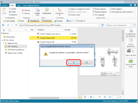 Haga clic en [Sí] en el cuadro de diálogo que se muestra. La página rotará y el documento se guardará.