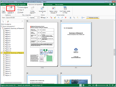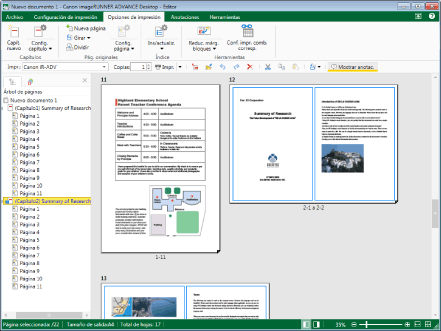 Desktop Editor se puede utilizar para especificar ajustes únicos por capítulo o página, establecer números de página, crear índices, etc. Resulta sencillo combinar documentos en un documento IWB con una estructura coherente, lo que hace que las tareas de oficina sean más eficientes.