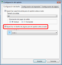 Seleccione la casilla de verificación [Especificar el diseño de página para el capítulo seleccionado].
